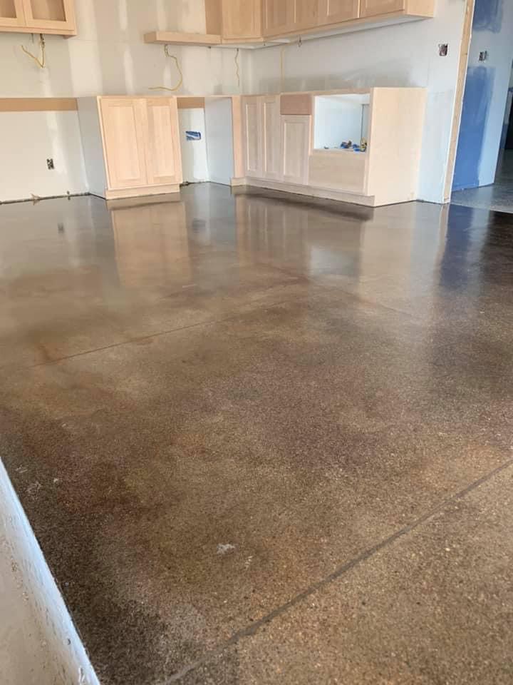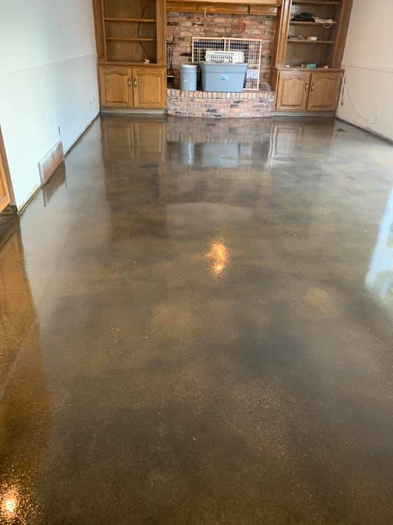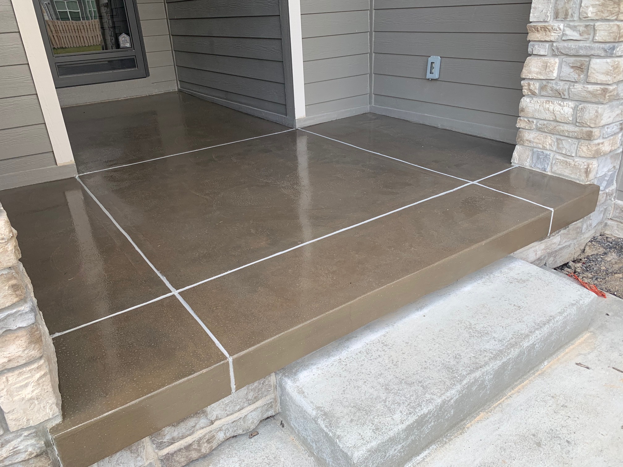 Garage Revolution can stain your indoor or outdoor concrete. First we prepare the concrete as well as make repairs, then we apply a semi-transparent stain, and finally we apply a UV stable sealant to protect your decorative concrete.